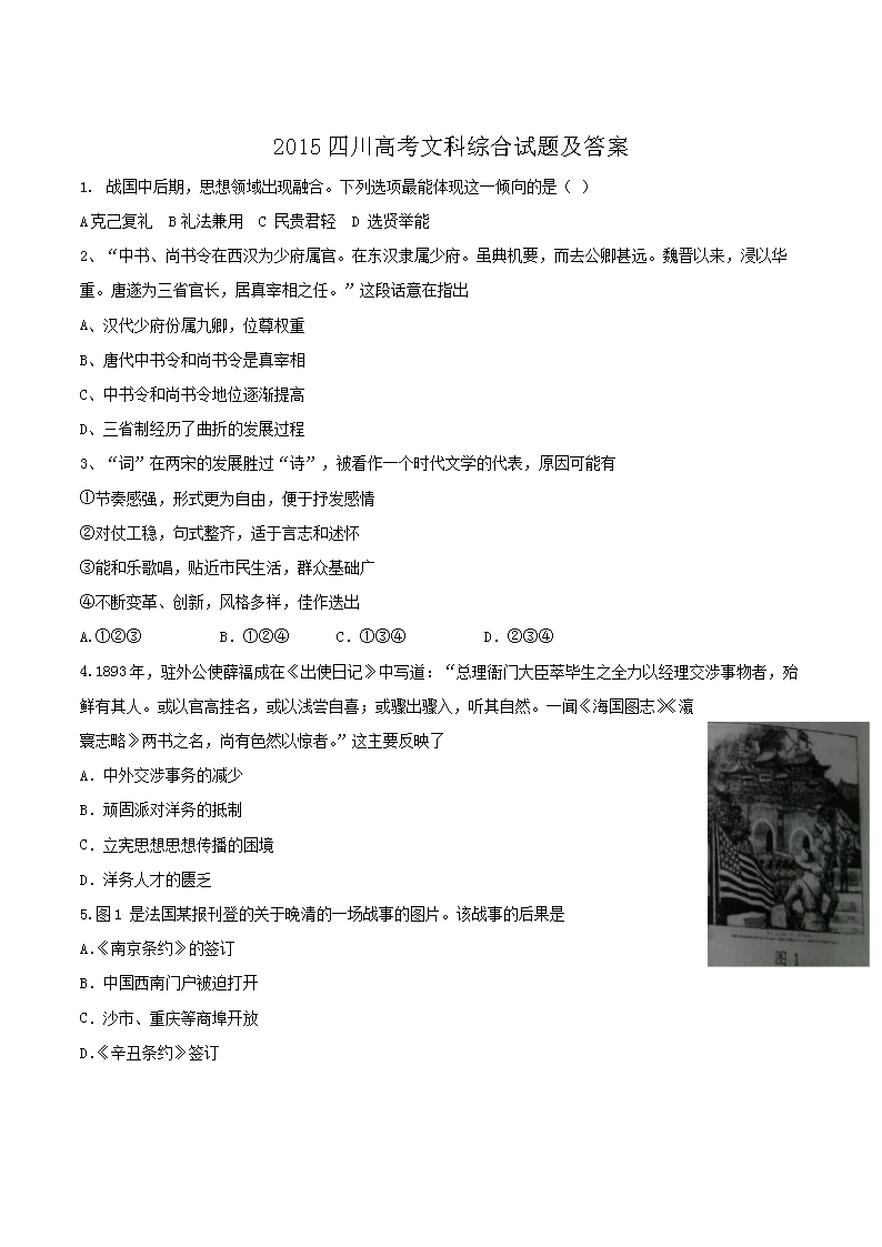【文档名称】 2015四川高考文科综合试题及答案(Word版).doc