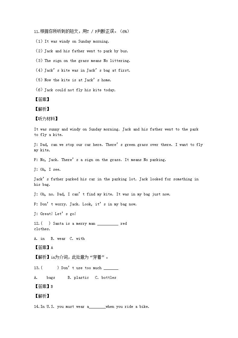 【文档预览】 无忧考网整理发布2018年云南省小升初英语真题及答案(Word版),前五页预览如下: