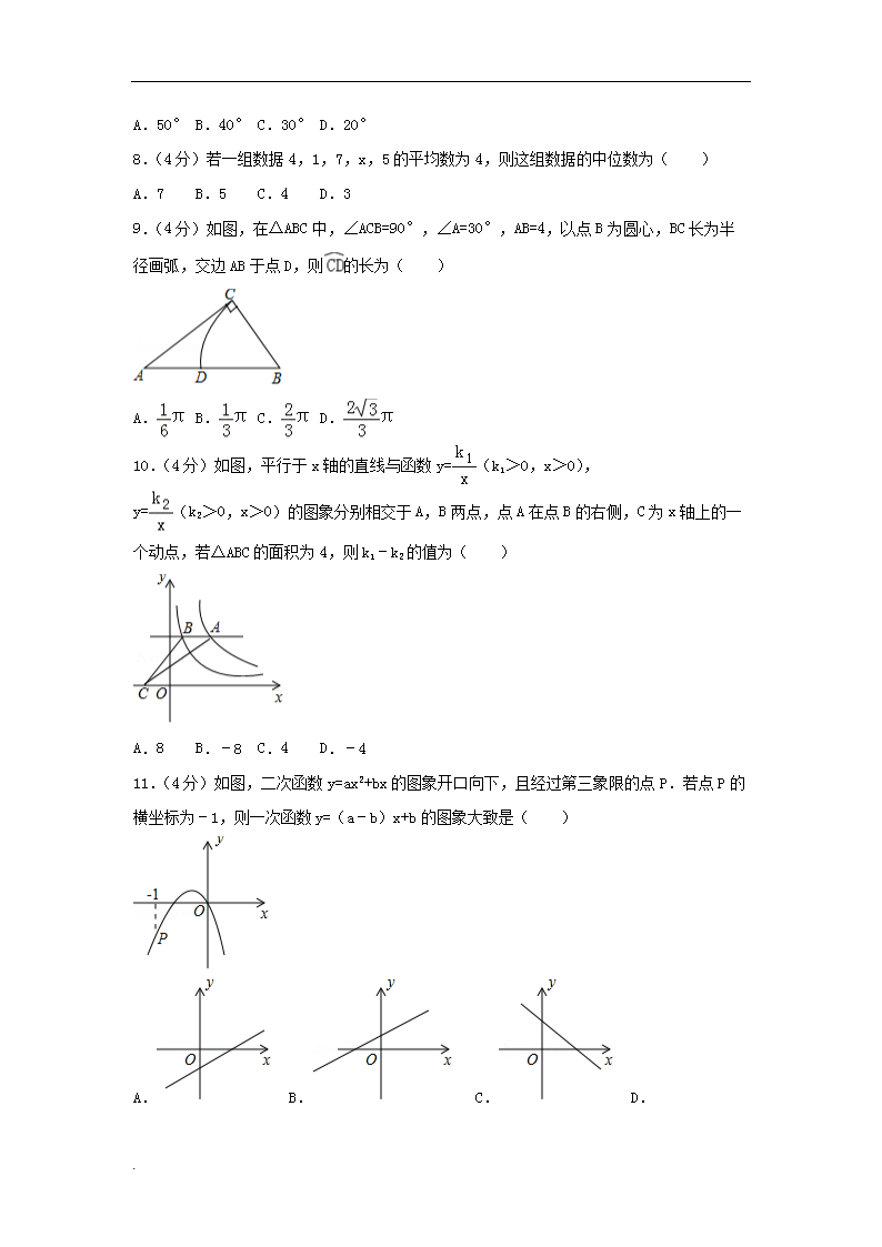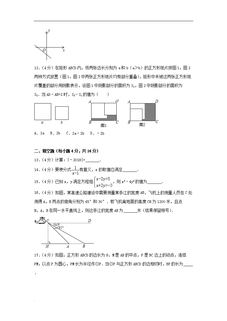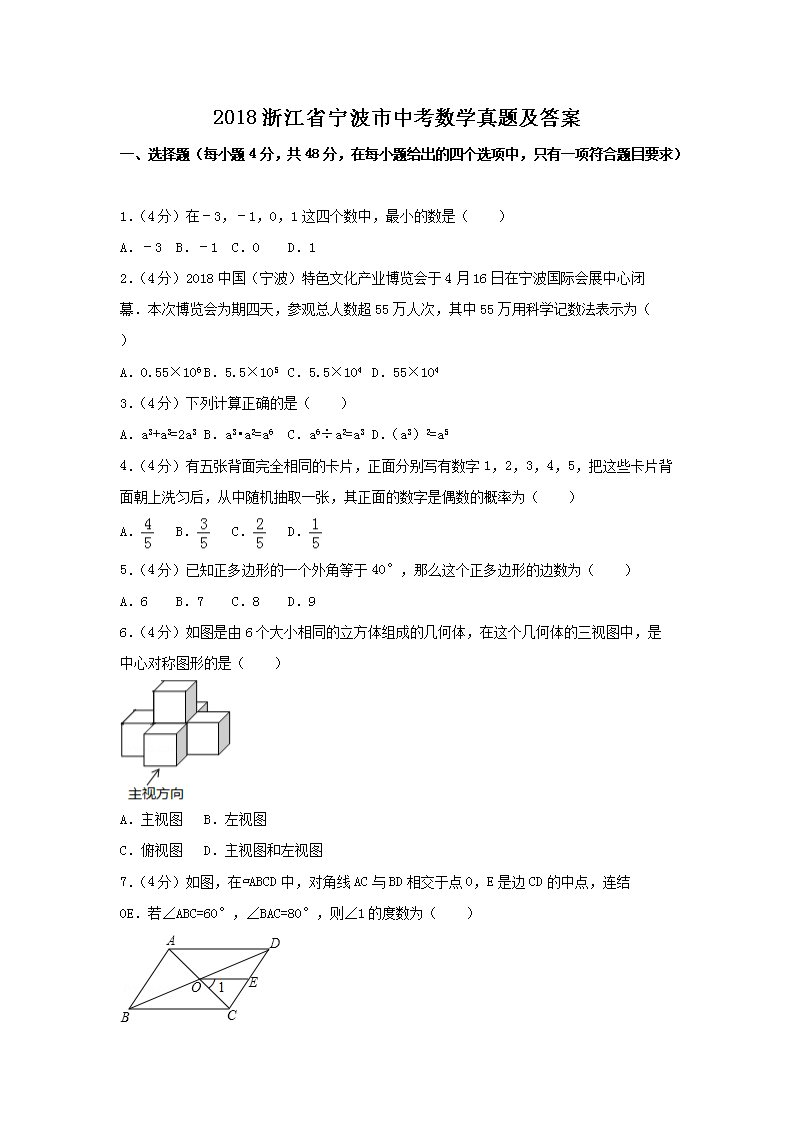 【文档名称】 2018浙江省宁波市中考数学真题及答案(Word版).doc