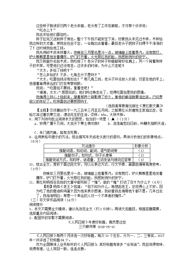 【文档名称】 2018浙江省衢州市中考语文真题及答案(Word版).doc