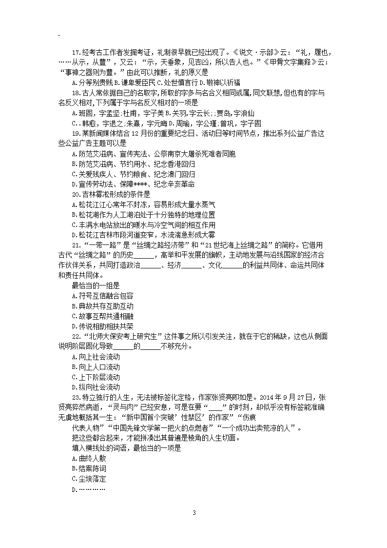 【文档名称】 2015上半年吉林公务员考试行测真题及答案甲级(Word版).doc