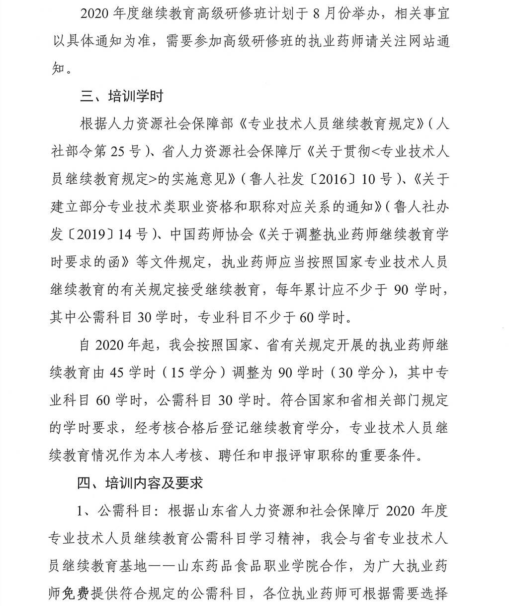 2020年山东执业药师继续教育培训工作的通知
