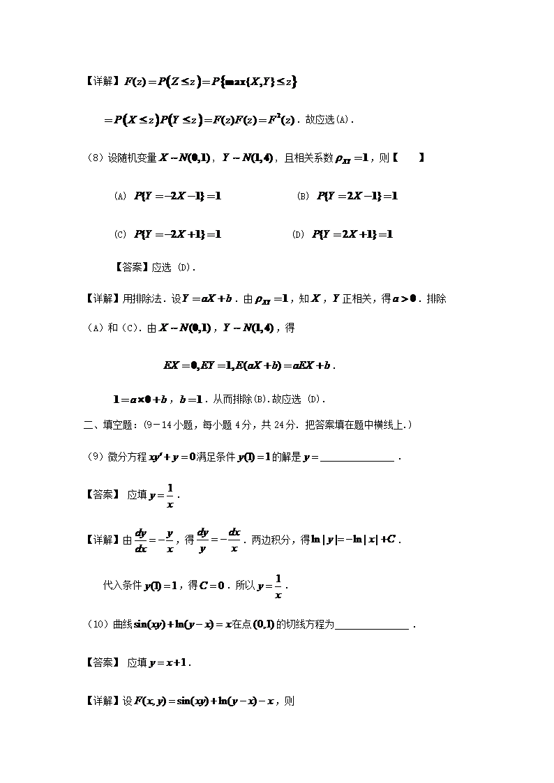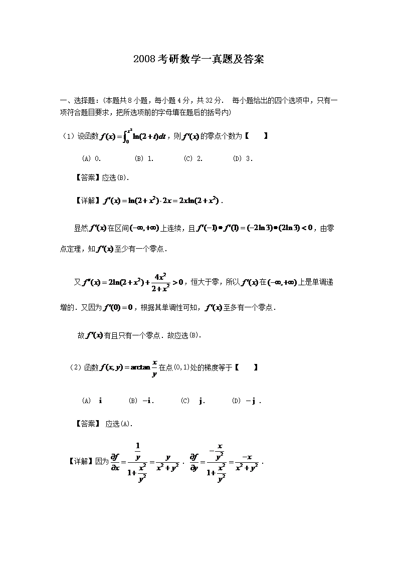 【文档名称】 2008考研数学一真题及答案(Word版).doc