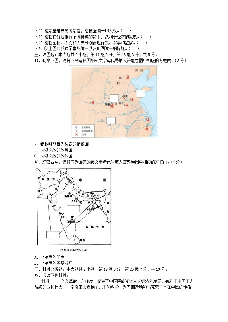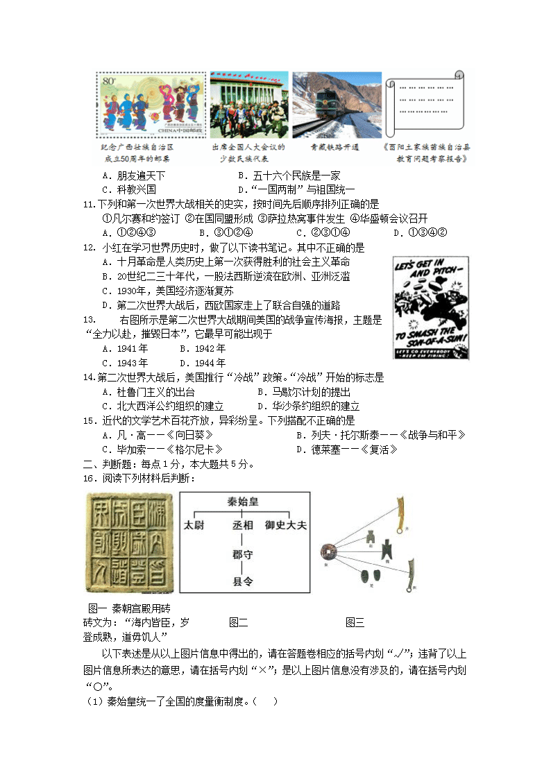 【文档名称】 2011年重庆市中考历史真题及答案(Word版).doc