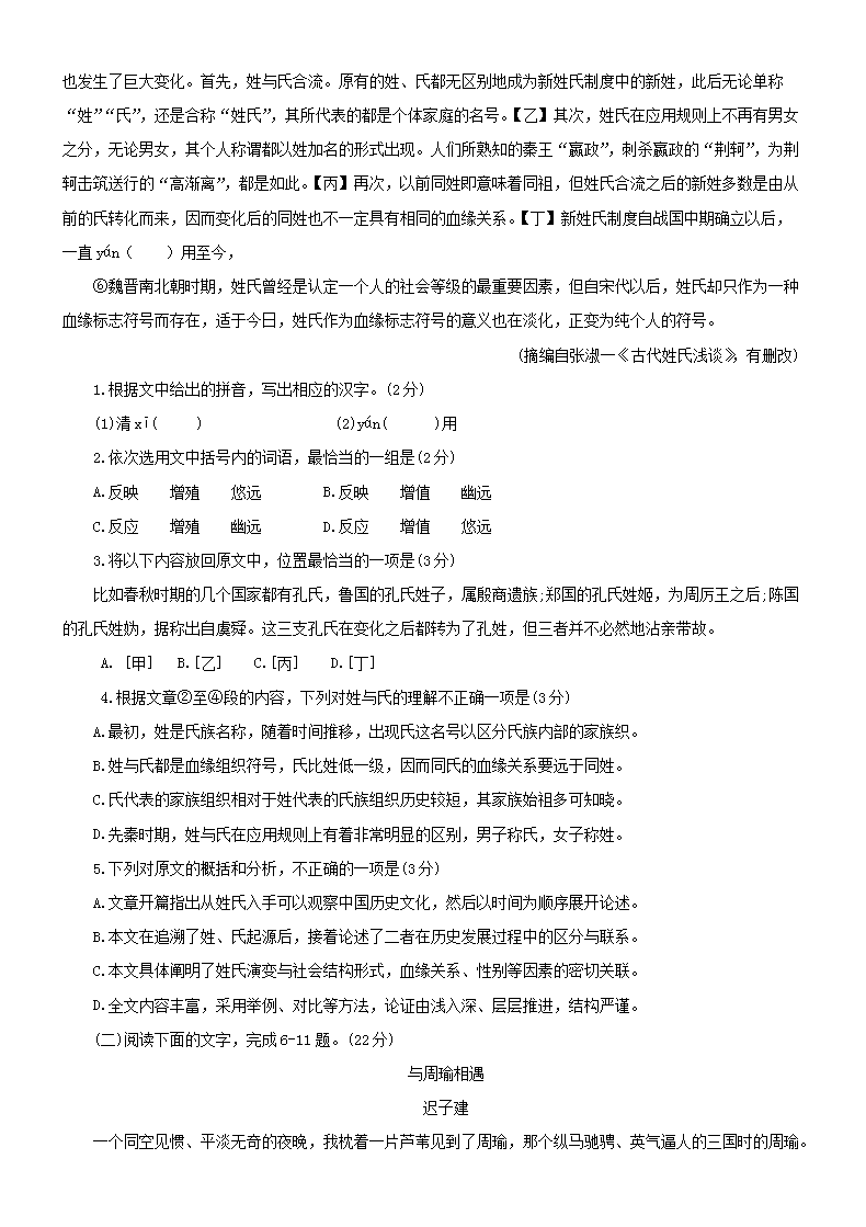 【文档名称】 2018年山东省高中会考语文真题及答案(Word版).doc