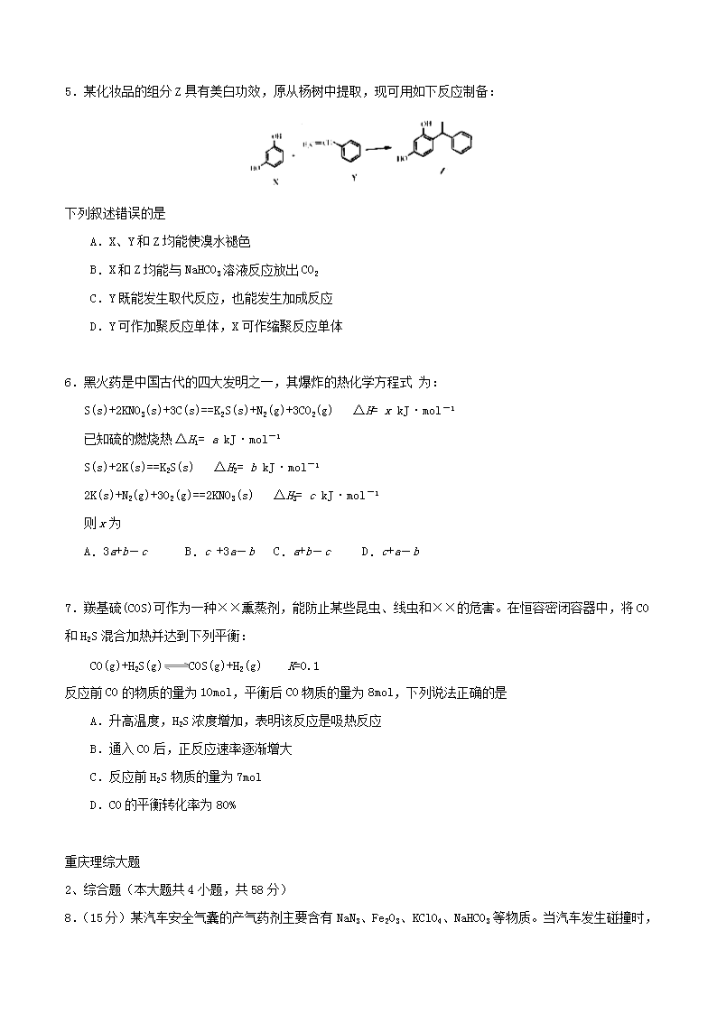 【文档名称】 2015重庆高考理科综合试题及答案(Word版).doc