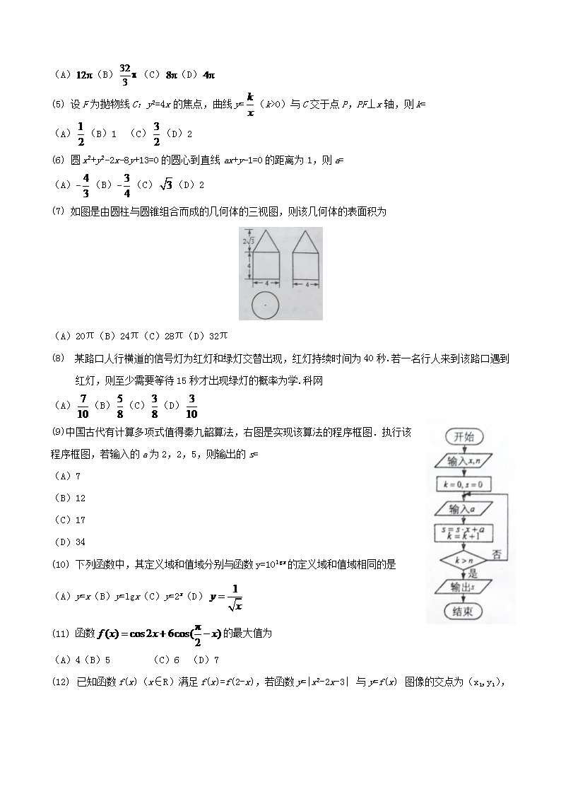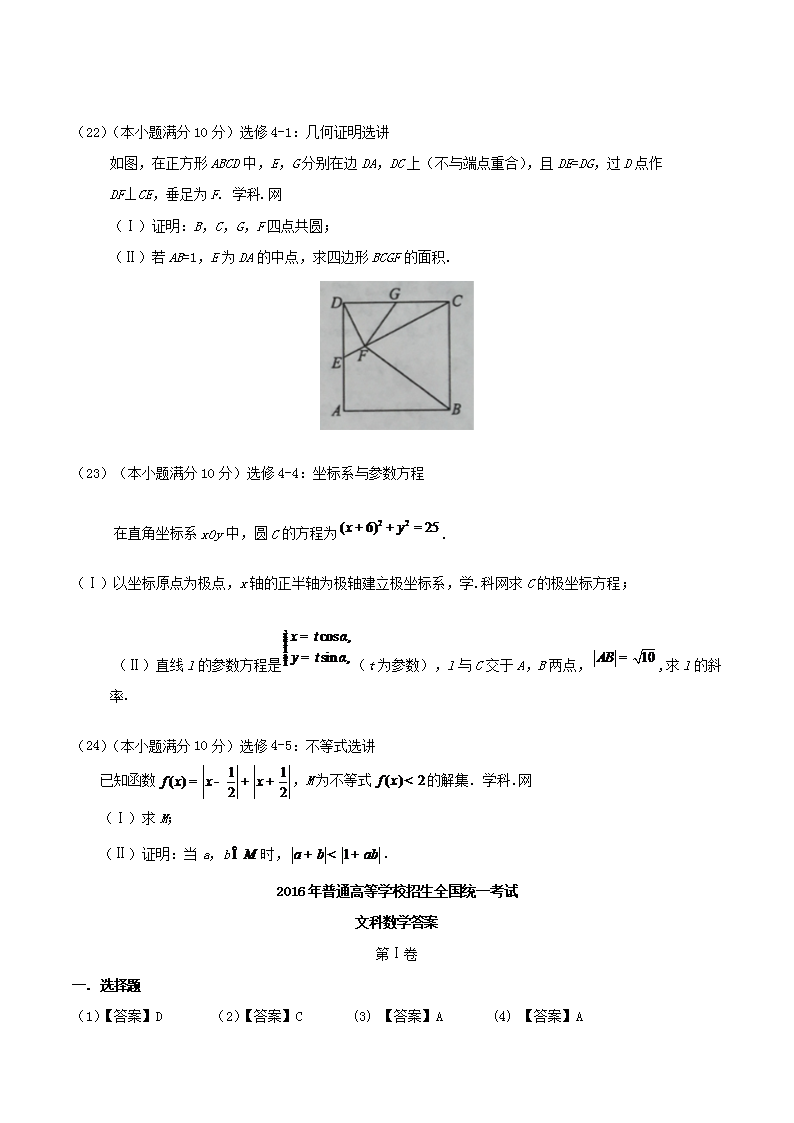 【文档名称】 2016海南高考文科数学真题及答案(Word版).doc