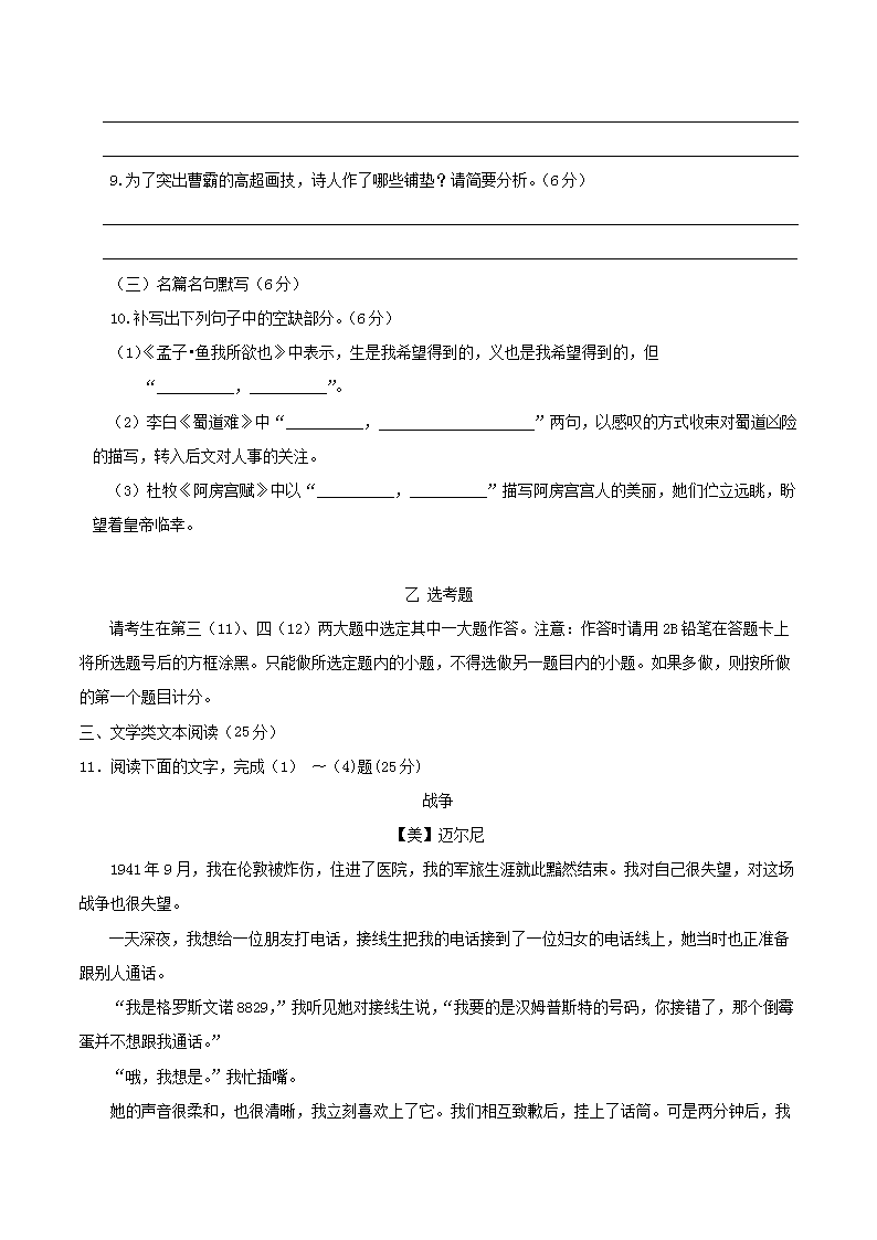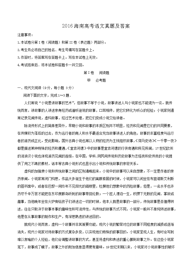 【文档名称】 2016海南高考语文真题及答案(Word版).doc