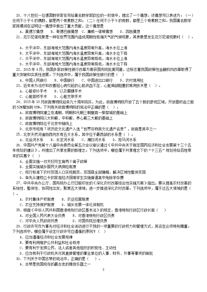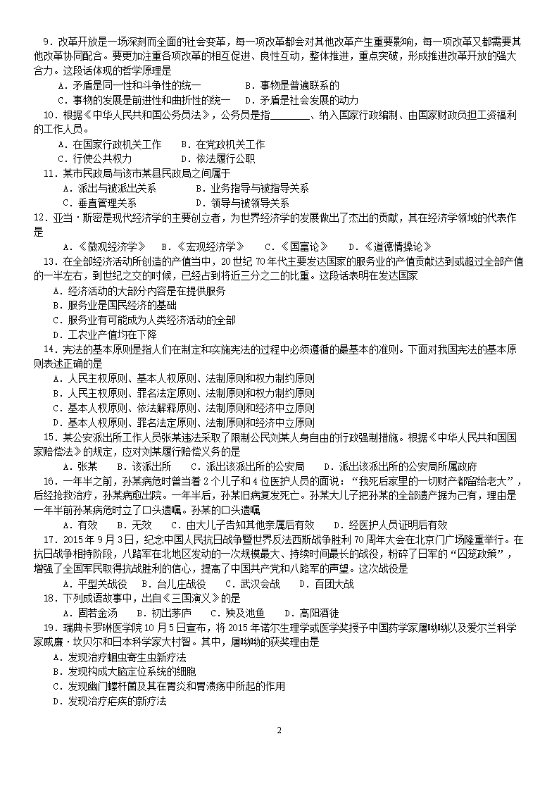 【文档名称】 2016年北京公务员行测考试真题及答案(Word版).doc