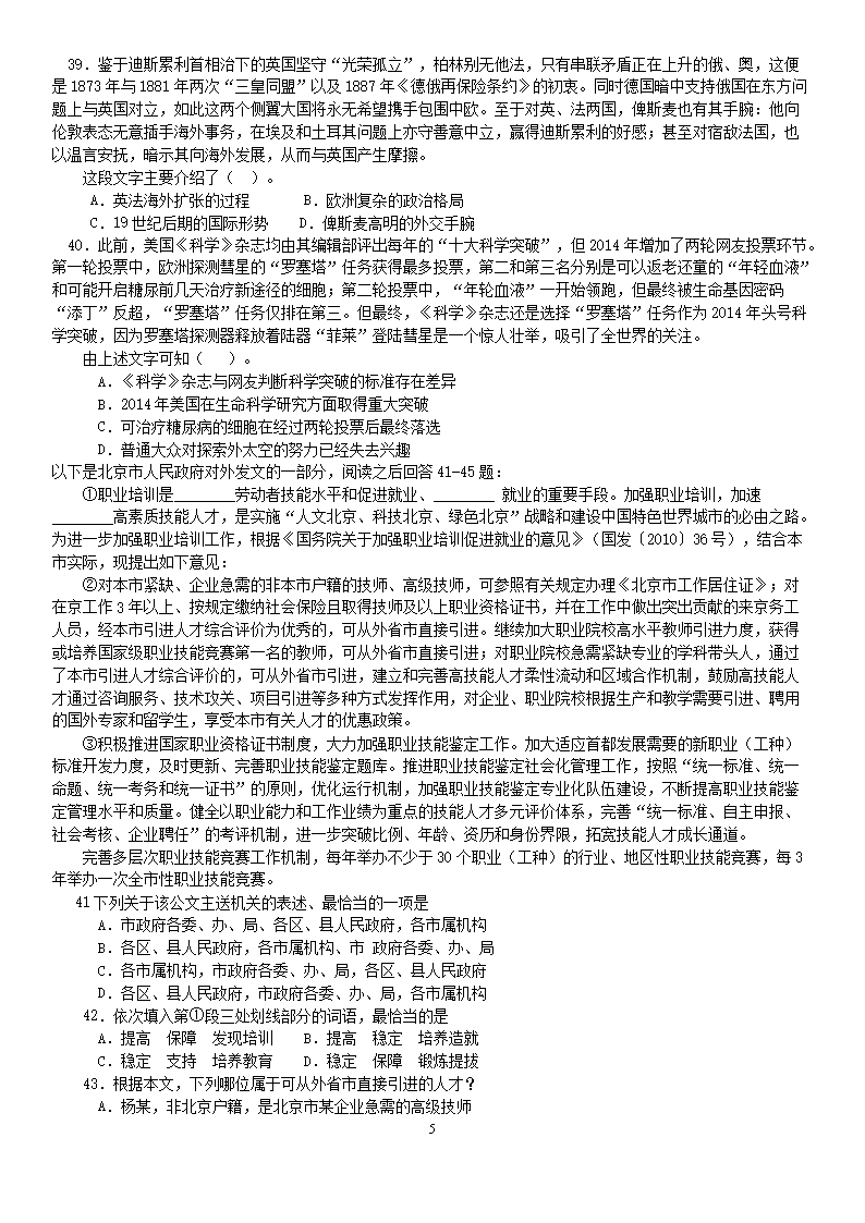 【文档预览】 无忧考网整理发布2016年北京公务员行测考试真题及答案(Word版),前五页预览如下: