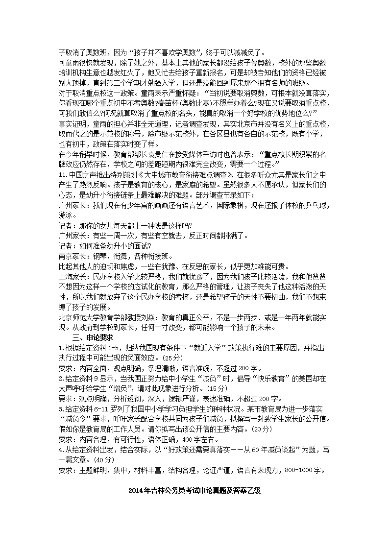【文档名称】 2014年吉林公务员考试申论真题及答案乙级(Word版).doc