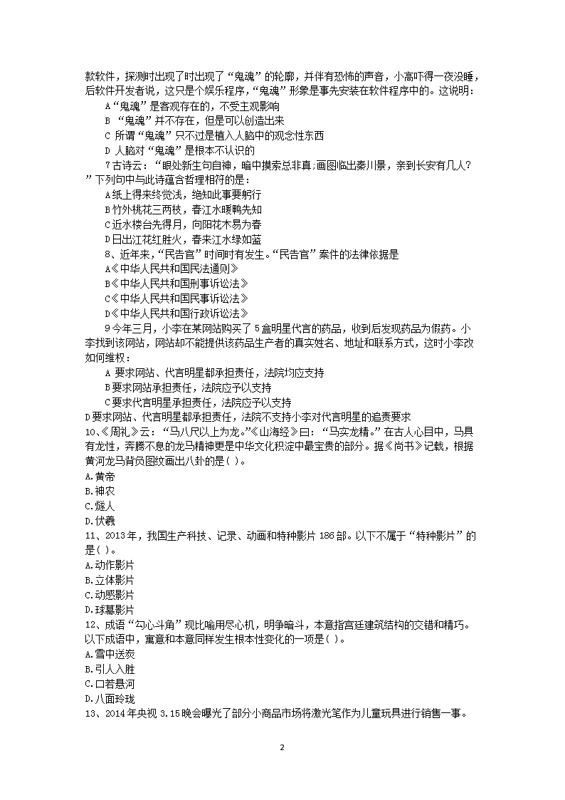 【文档名称】 2014年吉林公务员考试行测真题及答案乙级(Word版).doc
