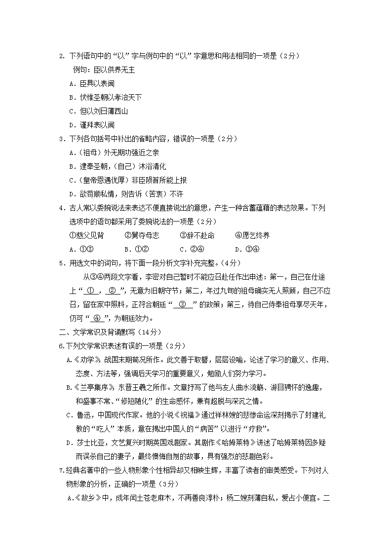 【文档预览】 无忧考网整理发布2019年北京普通高中会考语文真题及答案(Word版),前五页预览如下: