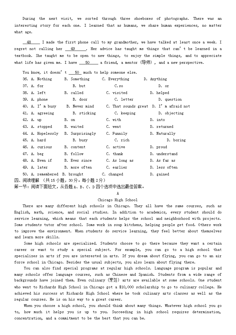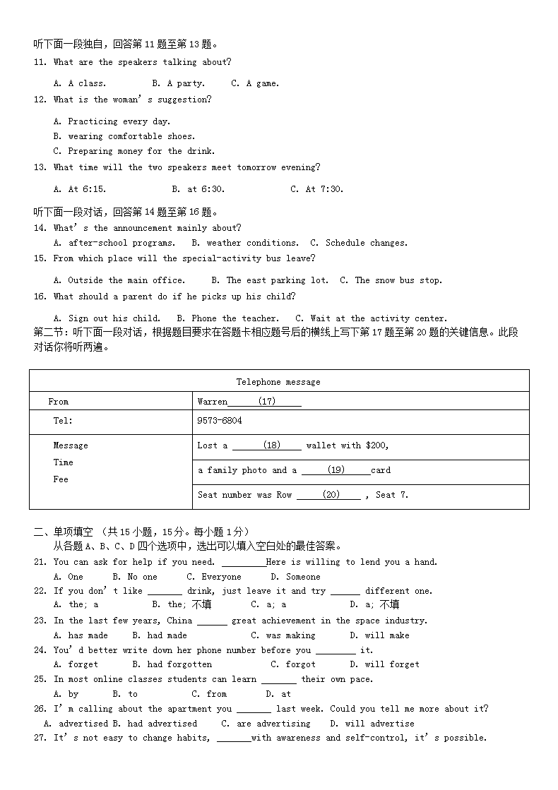 【文档预览】 无忧考网整理发布2017年北京普通高中会考英语真题及答案(Word版),前五页预览如下: