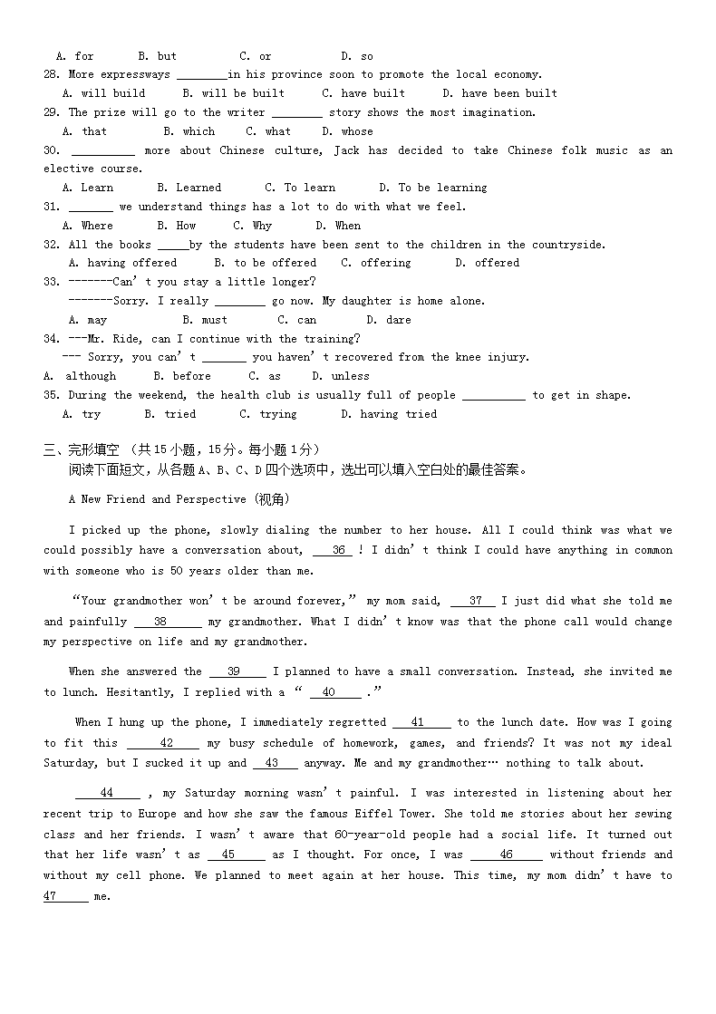 【文档名称】 2017年北京普通高中会考英语真题及答案(Word版).doc
