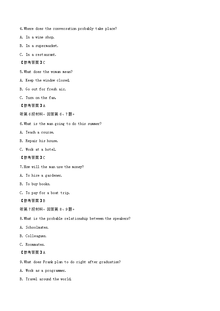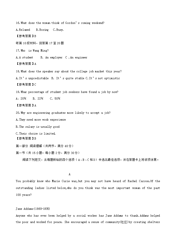 【文档名称】 2016福建高考英语真题及答案(Word版).doc