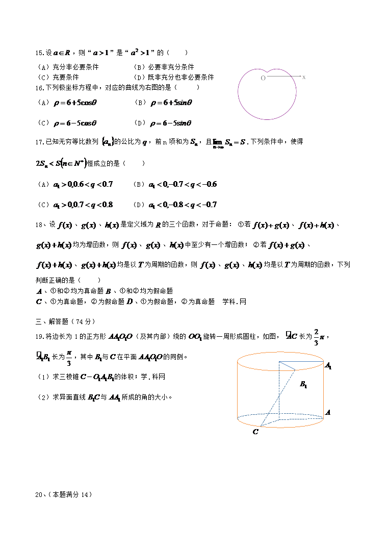 【文档预览】 无忧考网整理发布2016上海高考理科数学真题及答案(Word版),前五页预览如下:
