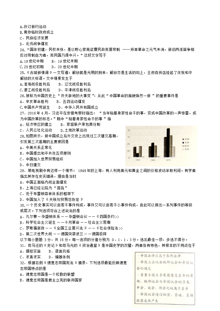 【文档名称】 2016上海高考历史真题及答案(Word版).doc