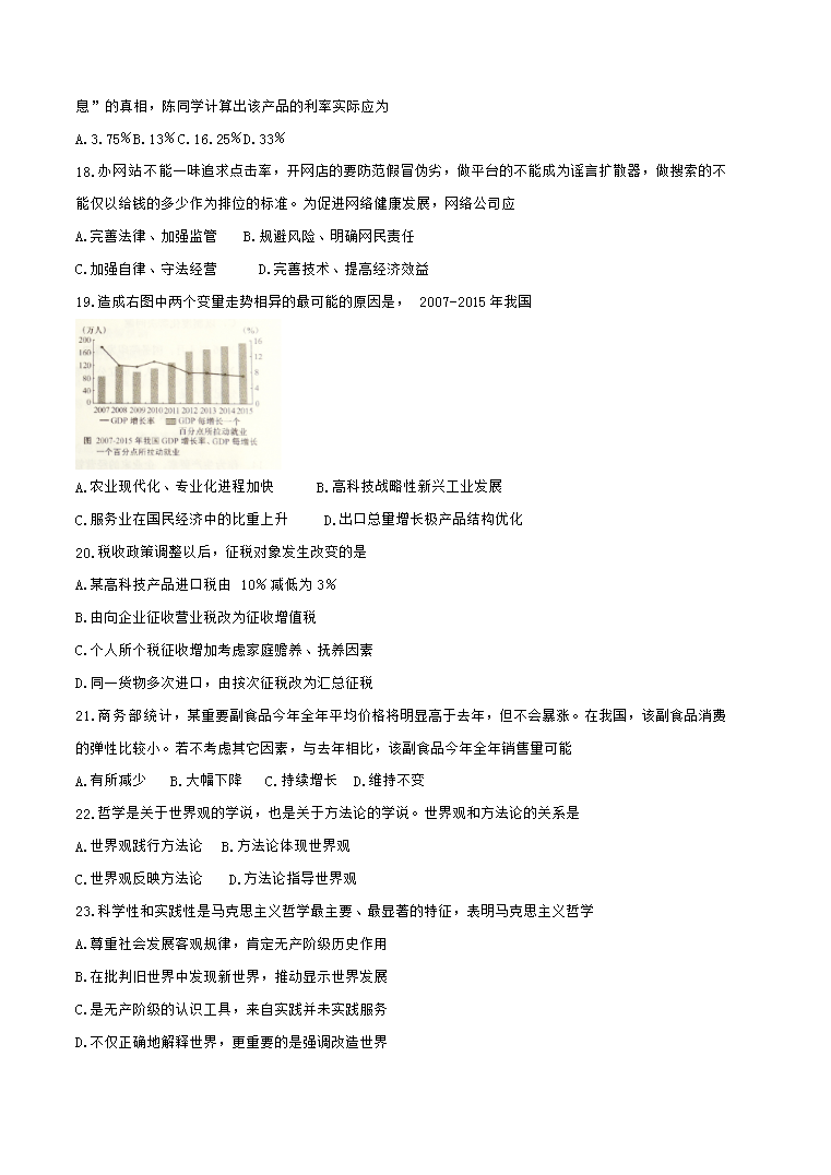【文档名称】 2016上海高考政治真题及答案(Word版).doc