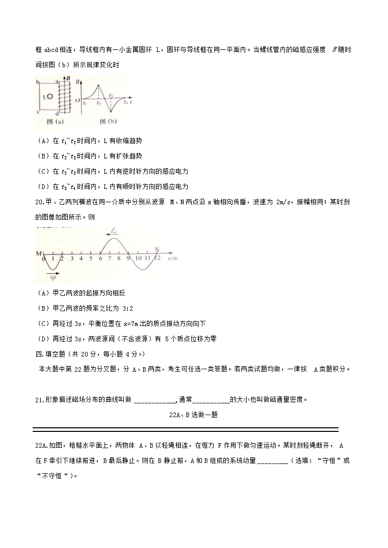 【文档名称】 2016上海高考物理真题及答案(Word版).doc