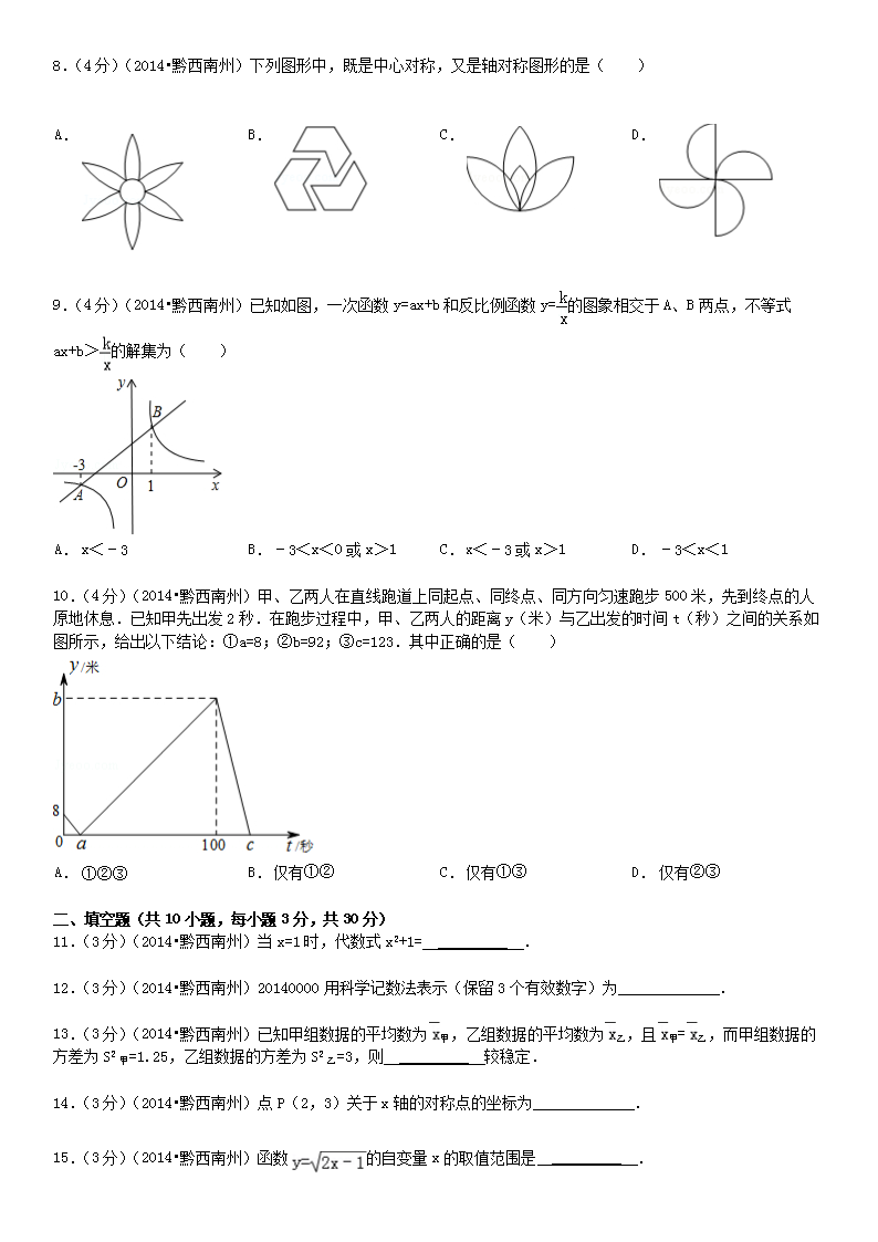 【文档名称】 2014年贵州省黔西南州中考数学试卷及答案(Word版).doc