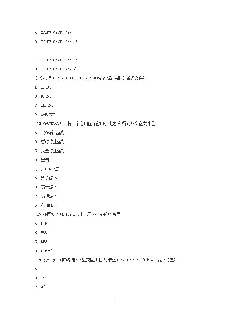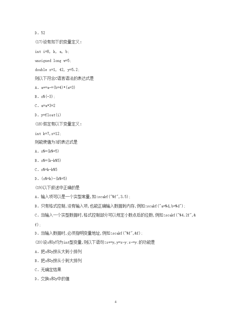 【文档名称】 1999年4月全国计算机二级C语言考试真题及答案(Word版).doc