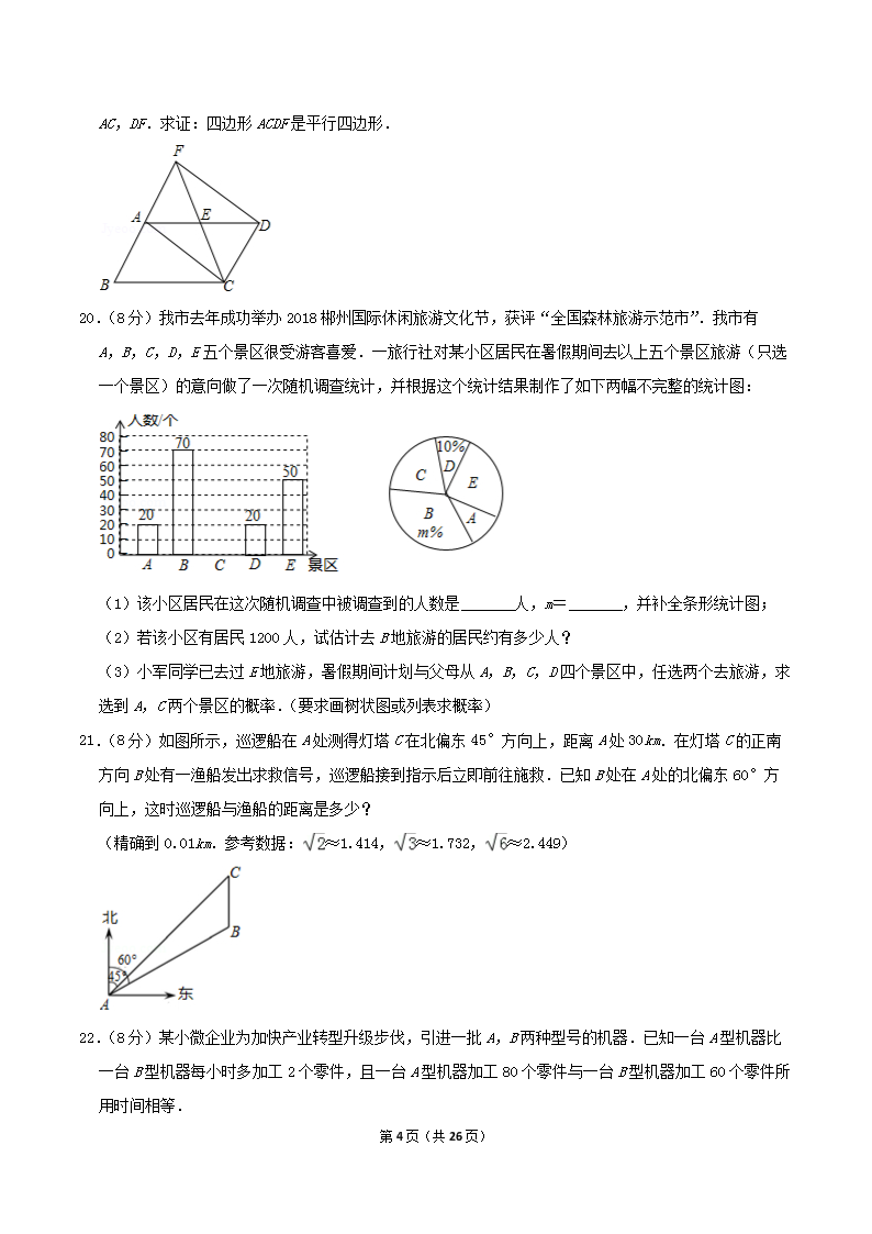 【文档名称】 2019年湖南省郴州市中考数学真题及答案(Word版).doc