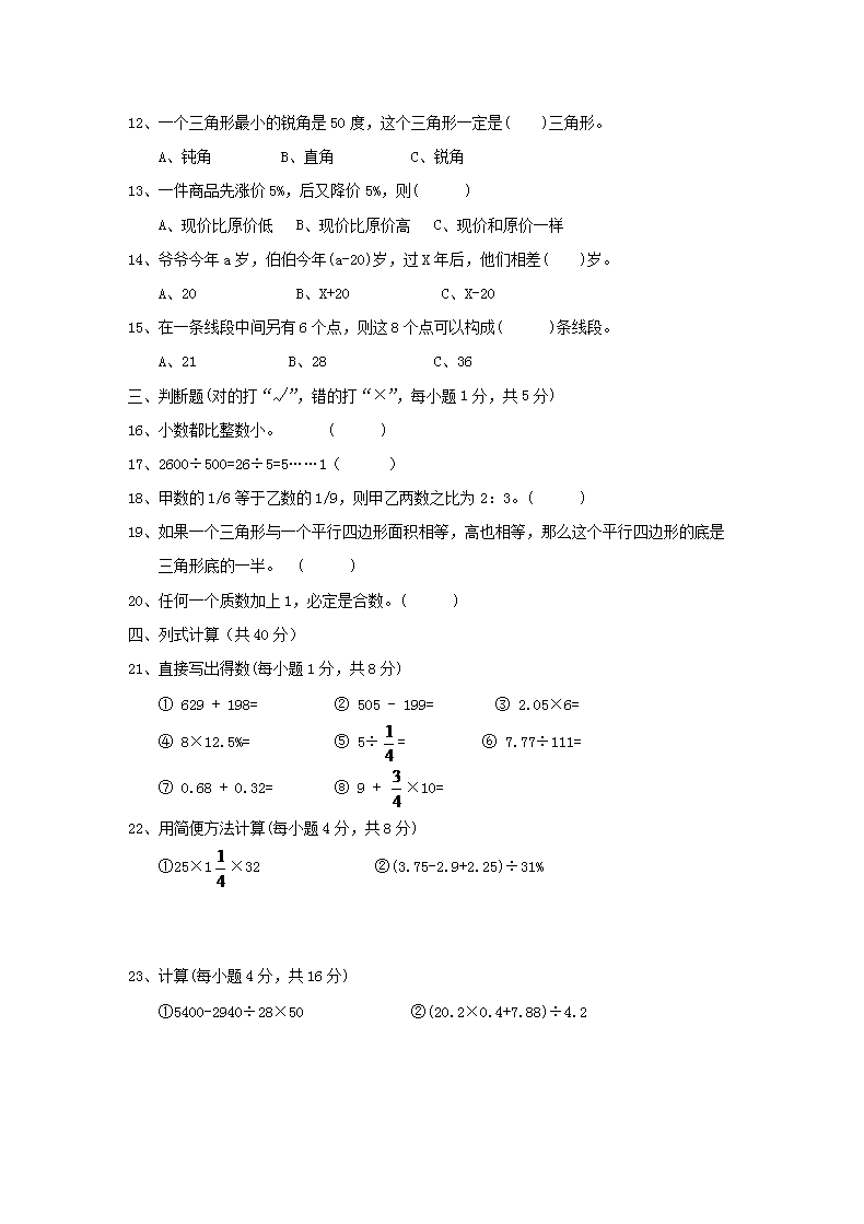 【文档预览】 无忧考网整理发布2018年海南小升初数学真题及答案(Word版),前五页预览如下: