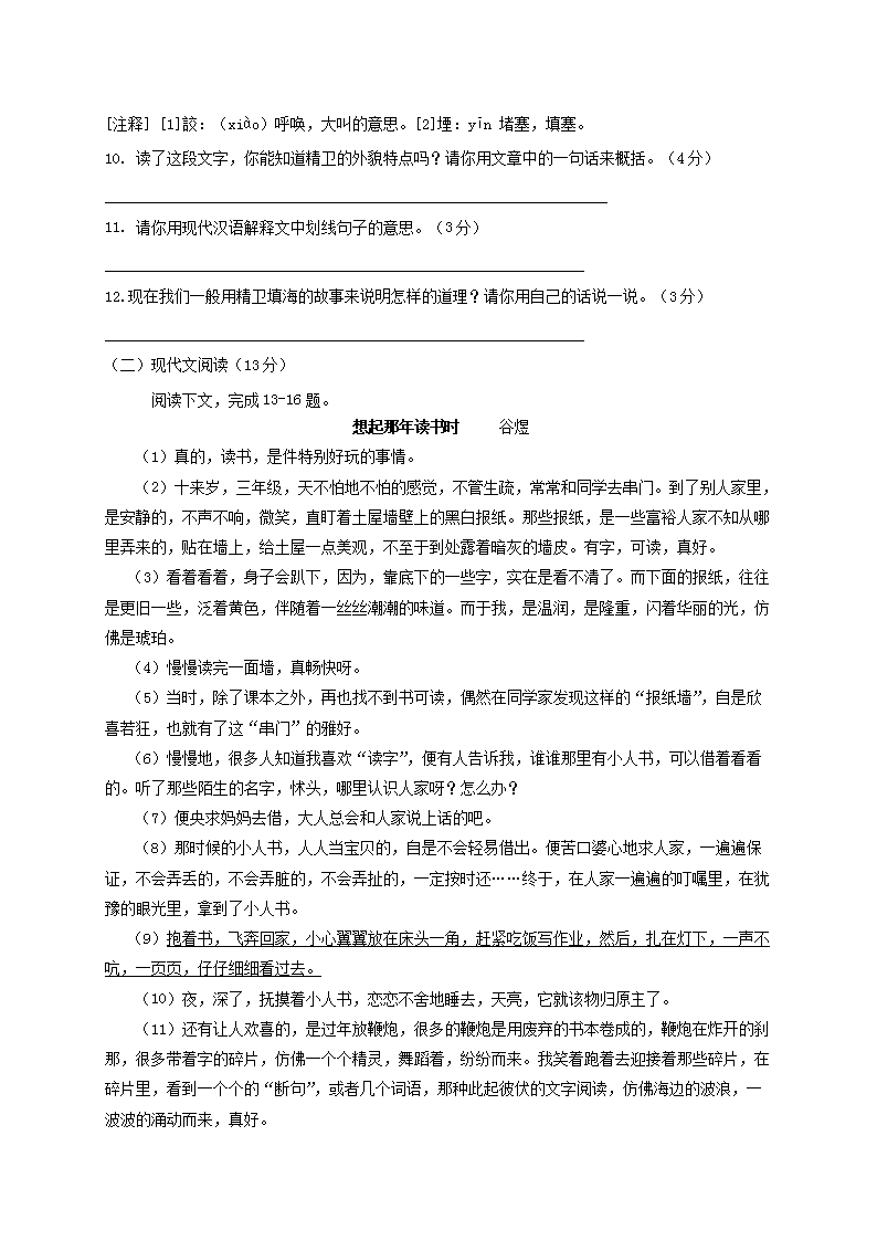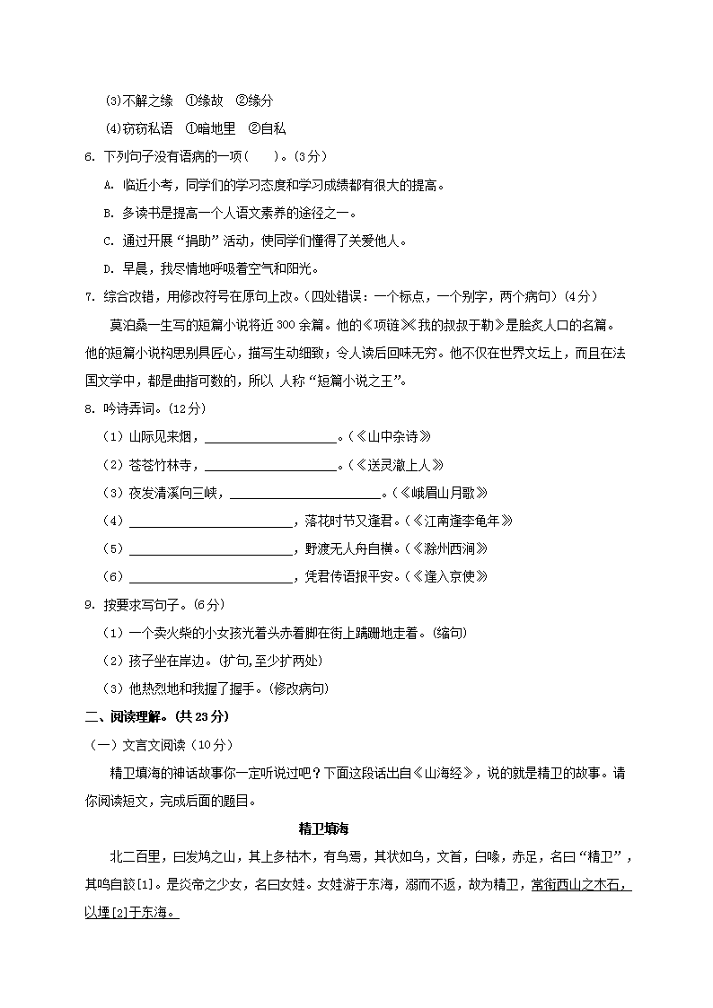 【文档名称】 2019年内蒙古小升初语文真题及答案(Word版).doc