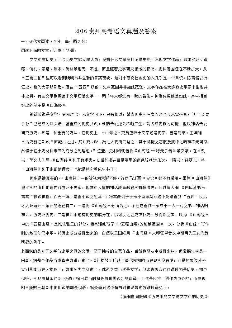 【文档名称】 2016贵州高考语文真题及答案(Word版).doc