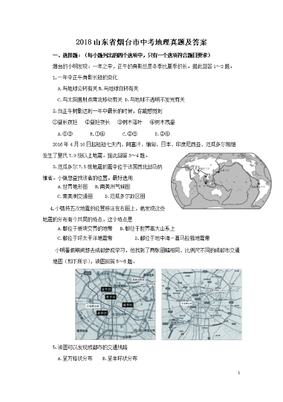 【文档名称】 2018山东省烟台市中考地理真题及答案(Word版).doc