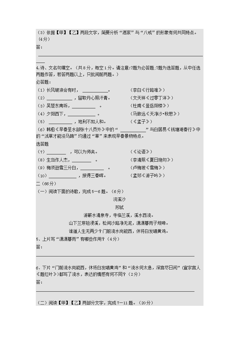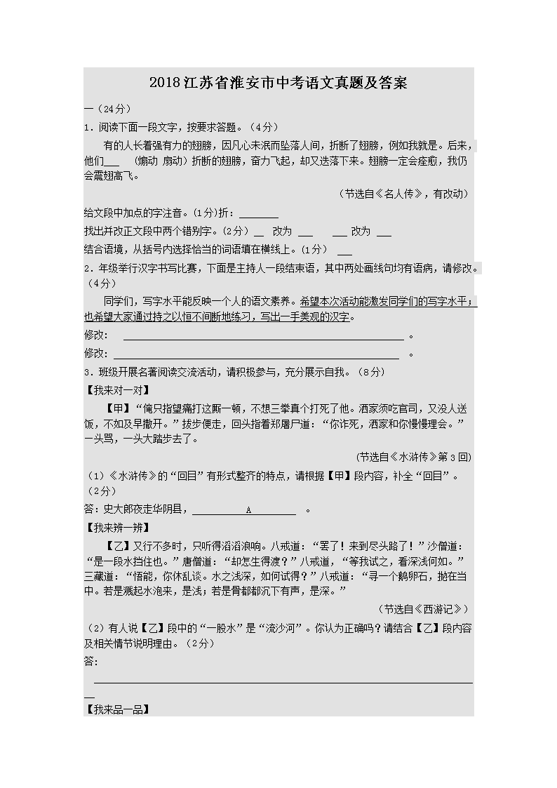 【文档名称】 2018江苏省淮安市中考语文真题及答案(Word版).doc