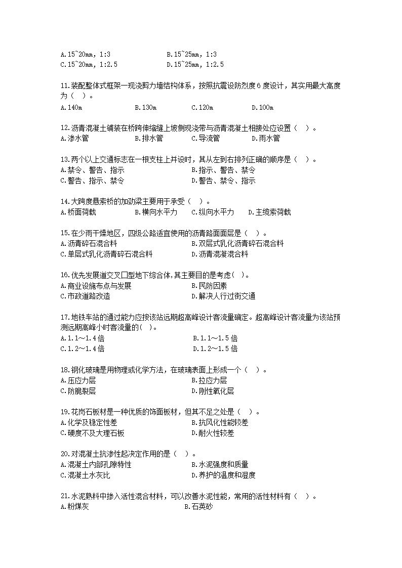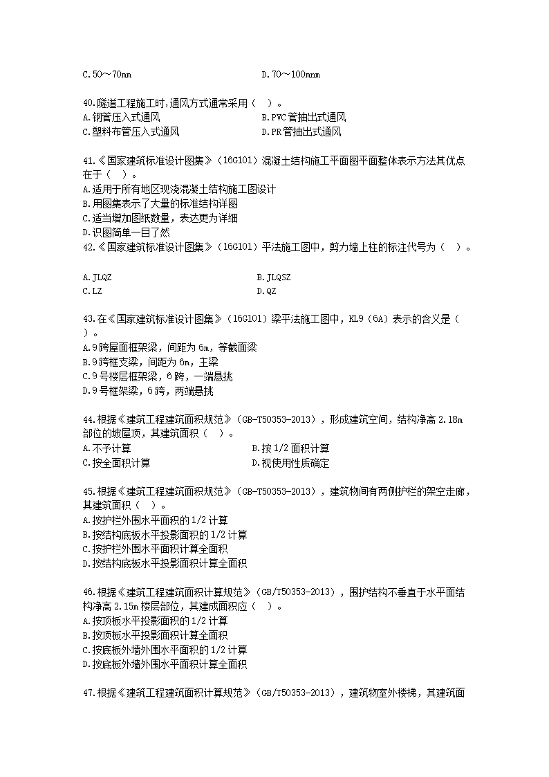 【文档名称】 2017年一级造价工程师土建计量考试真题及答案(Word版).doc