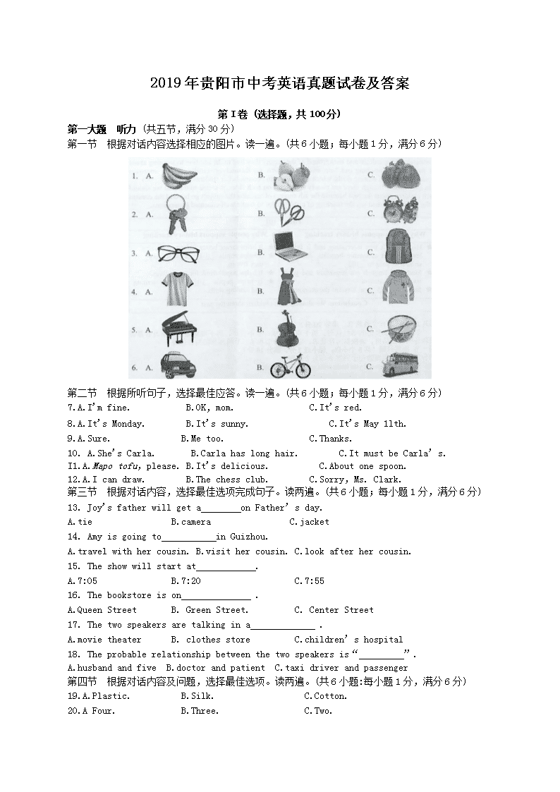 【文档预览】 无忧考网整理发布2019年贵州贵阳市中考英语真题试卷及答案(Word版),前五页预览如下: