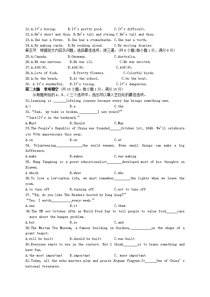 【文档名称】 2019年贵州贵阳市中考英语真题试卷及答案(Word版).doc