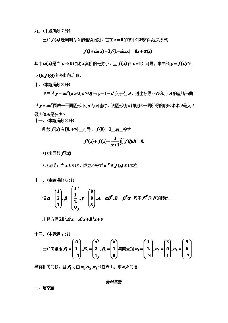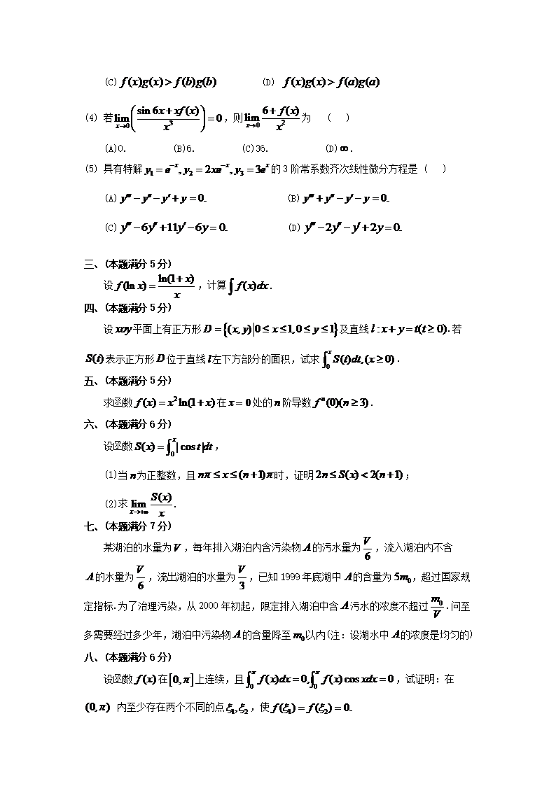 【文档预览】 无忧考网整理发布2000考研数学二真题及答案(Word版),前五页预览如下: