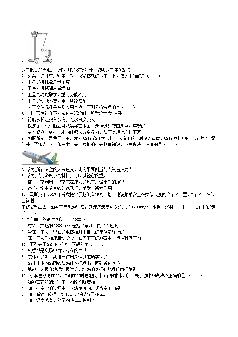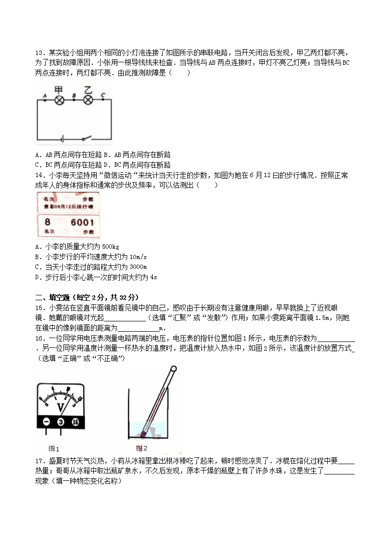 【文档名称】 2016年四川省成都市中考物理真题及答案(Word版).doc