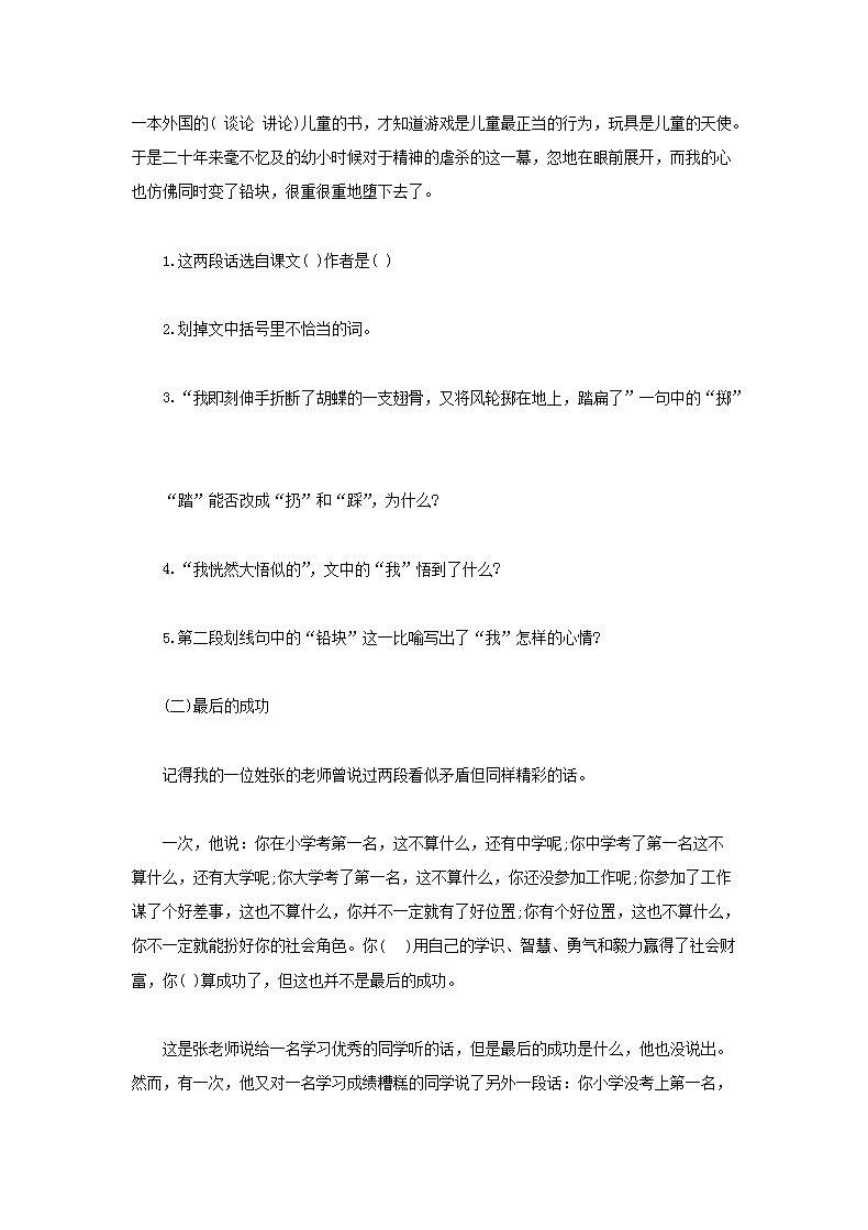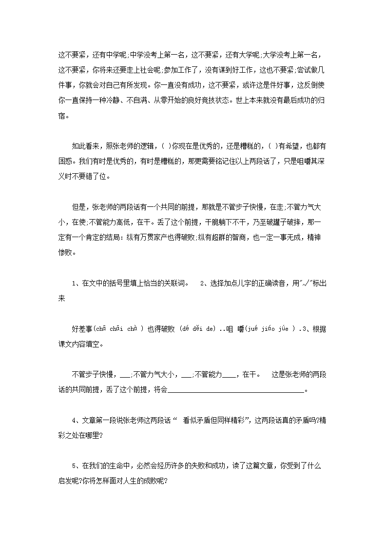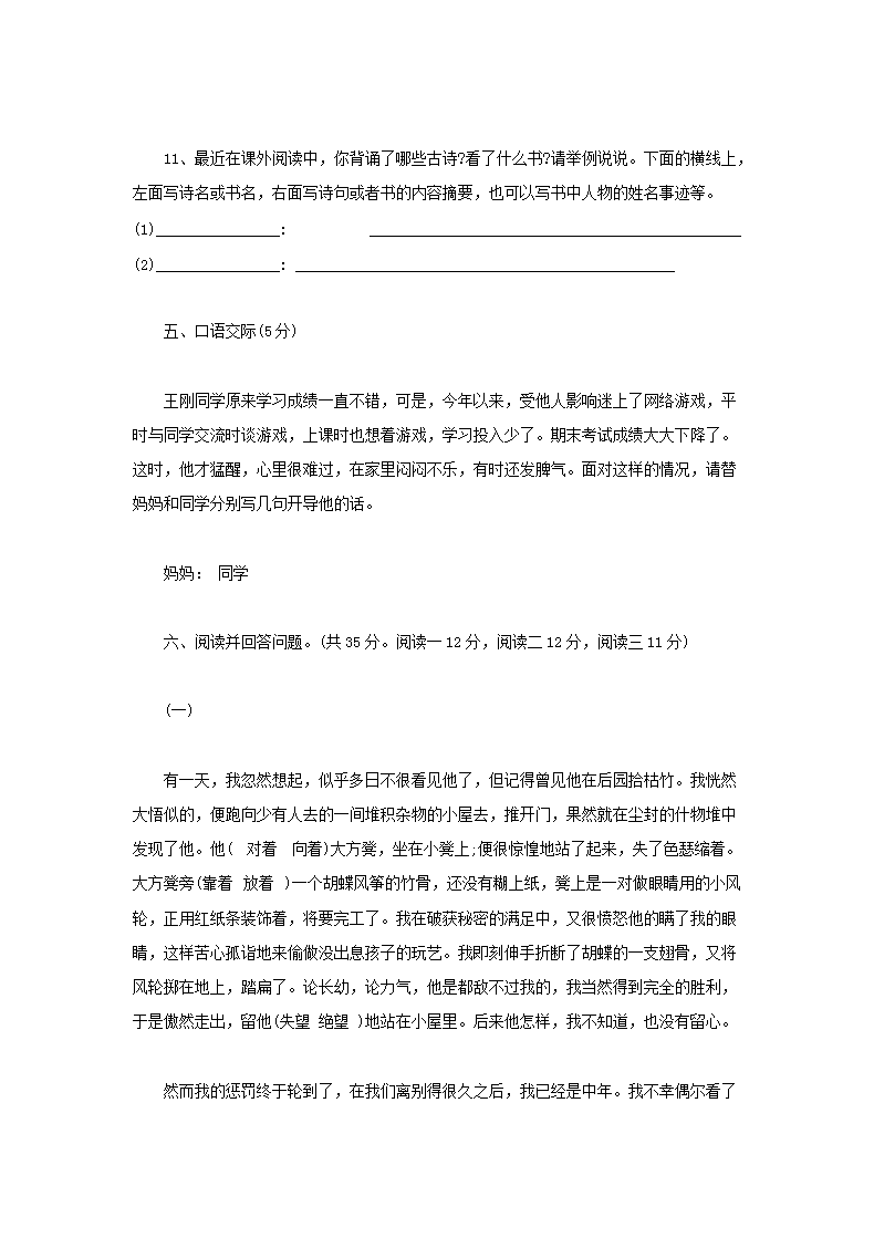 【文档预览】 无忧考网整理发布2016年河北唐山小升初语文真题(Word版),前五页预览如下: