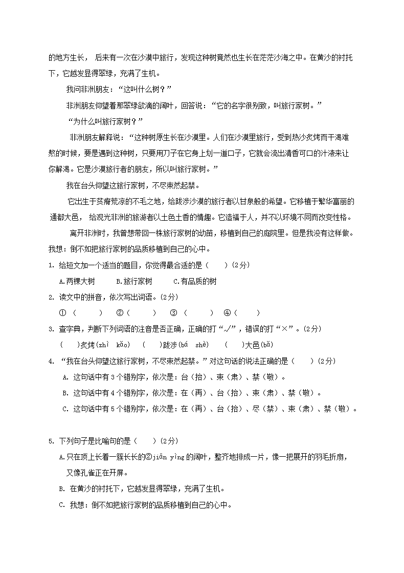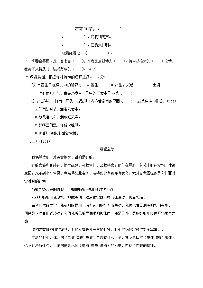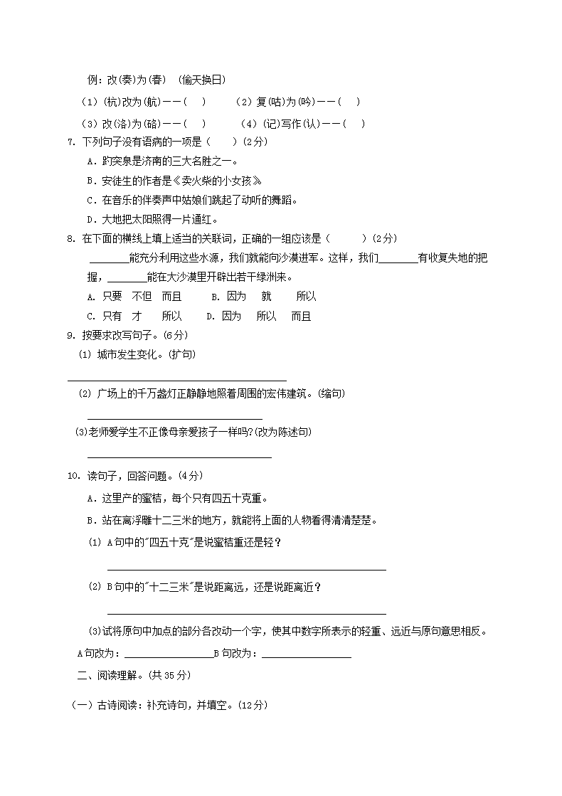 【文档名称】 2018年甘肃小升初语文真题及答案(Word版).doc