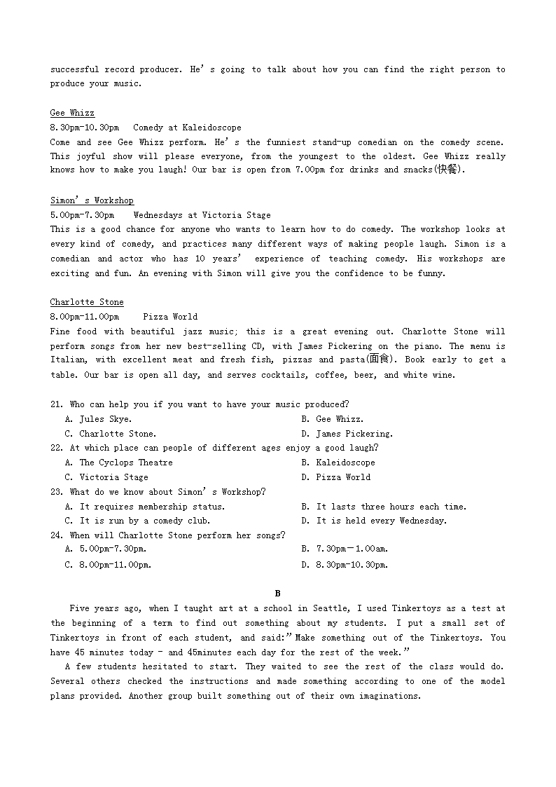 【文档名称】 2016重庆高考英语真题及答案(Word版).doc