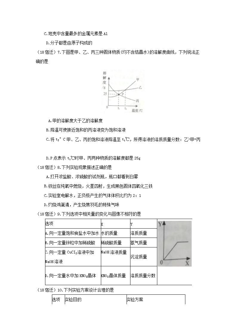 【文档名称】 2018江苏省宿迁市中考化学真题及答案(Word版).doc