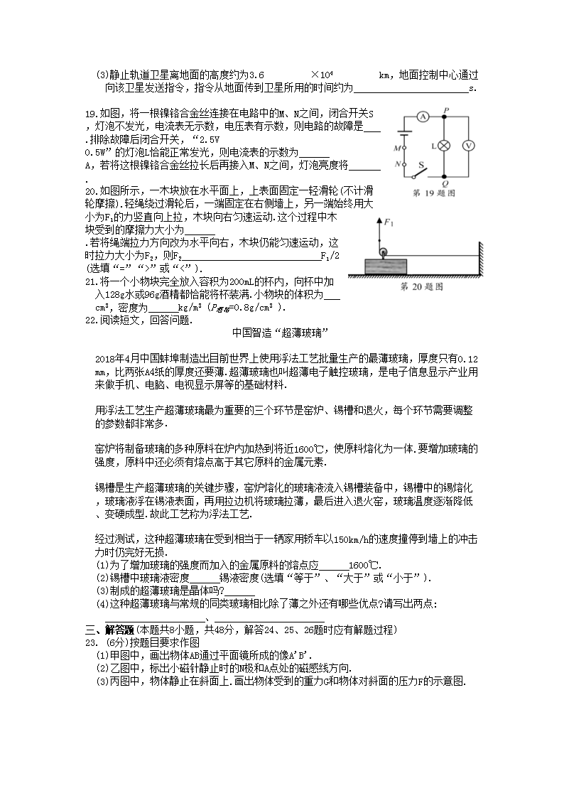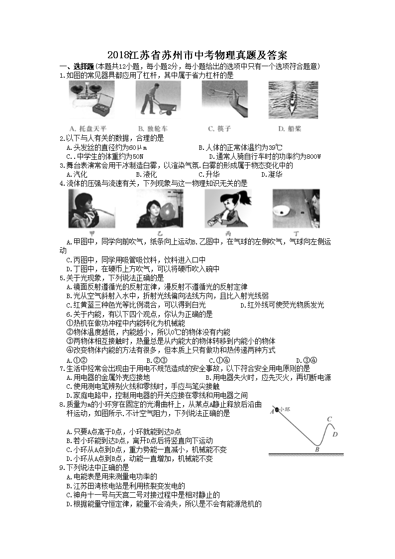 【文档名称】 2018江苏省苏州市中考物理真题及答案(Word版).doc