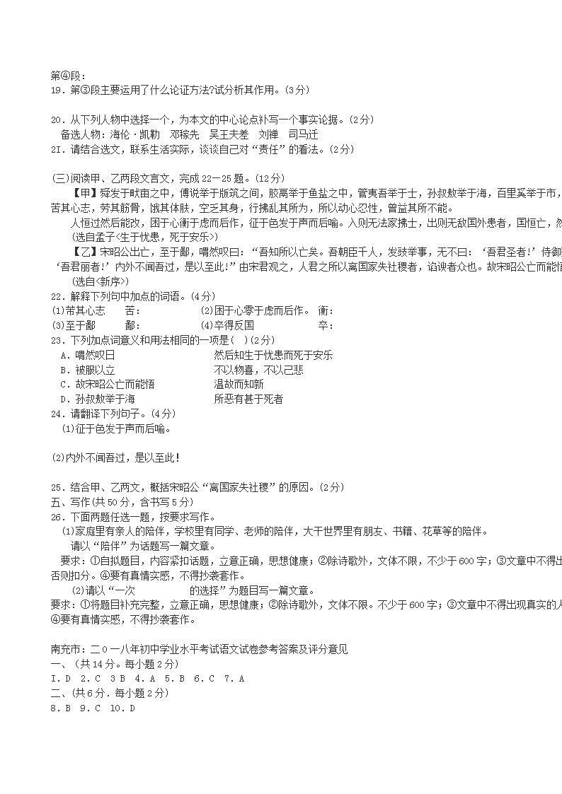 【文档名称】 2018年四川省南充市中考语文真题及答案(Word版).doc