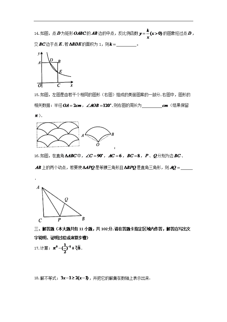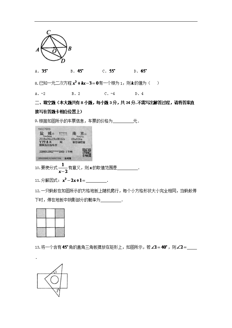 【文档名称】 2018江苏省盐城市中考数学真题及答案(Word版).doc