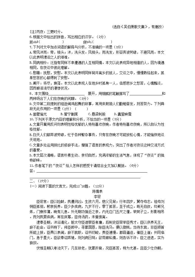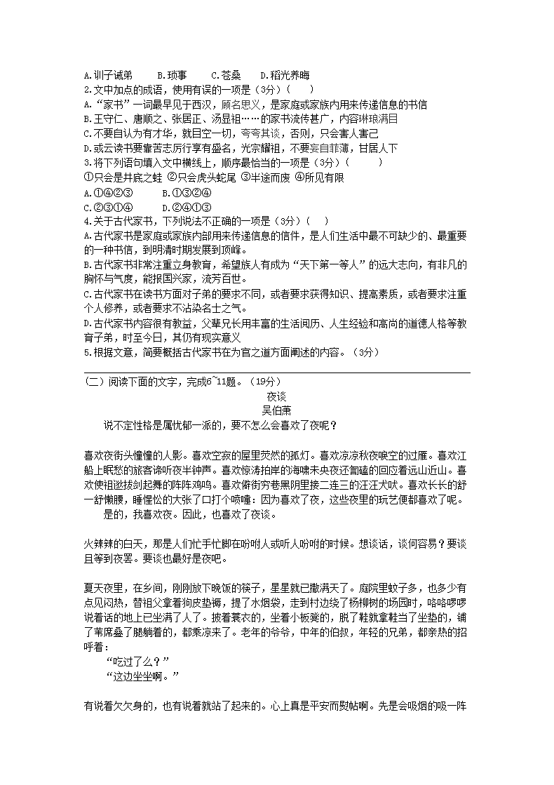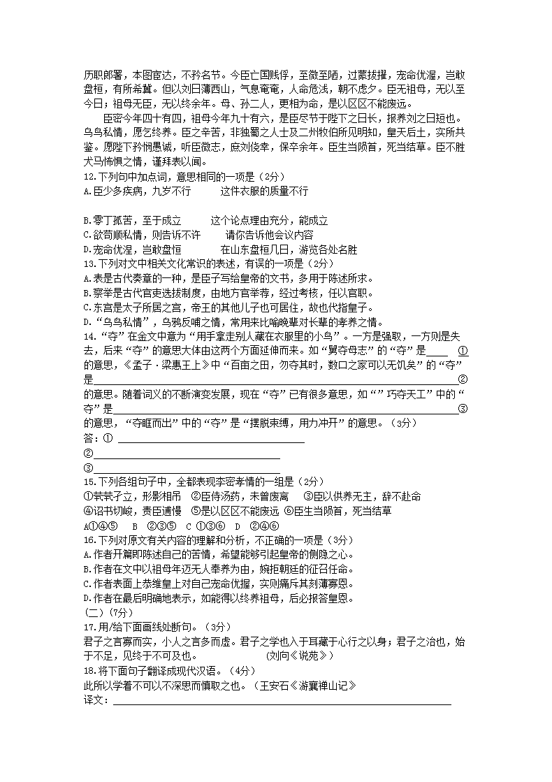 【文档名称】 2019年山东高中会考语文真题及答案(Word版).doc