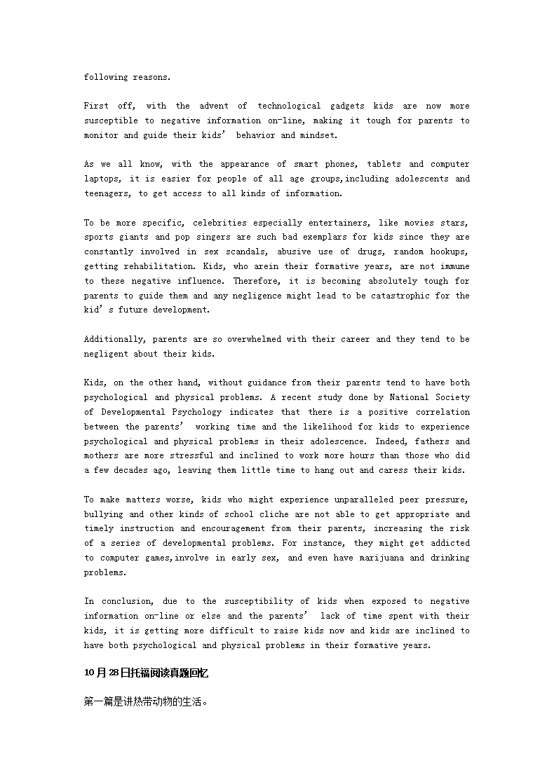 【文档名称】 2016年10月托福真题回忆及解析(Word版).doc