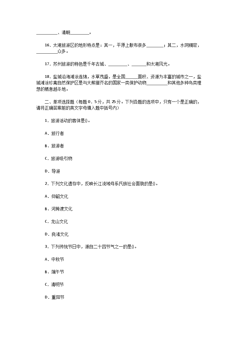 【文档名称】 2008年江苏导游资格考试导游基础知识真题及答案(Word版).doc