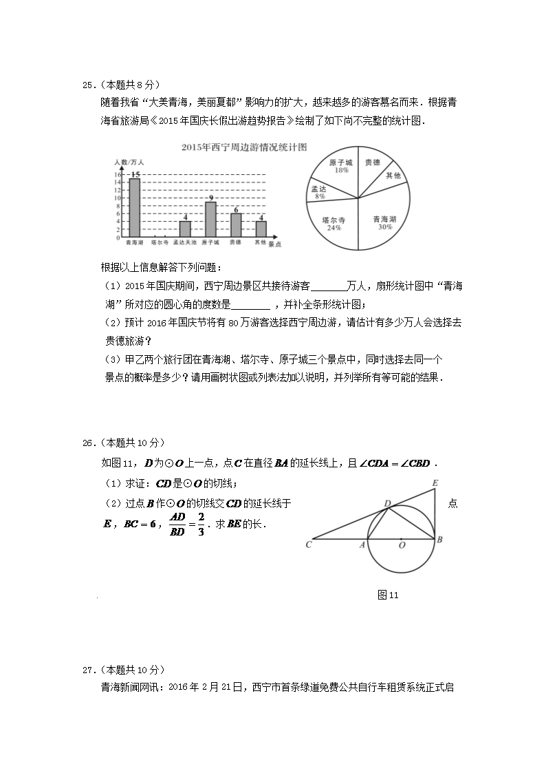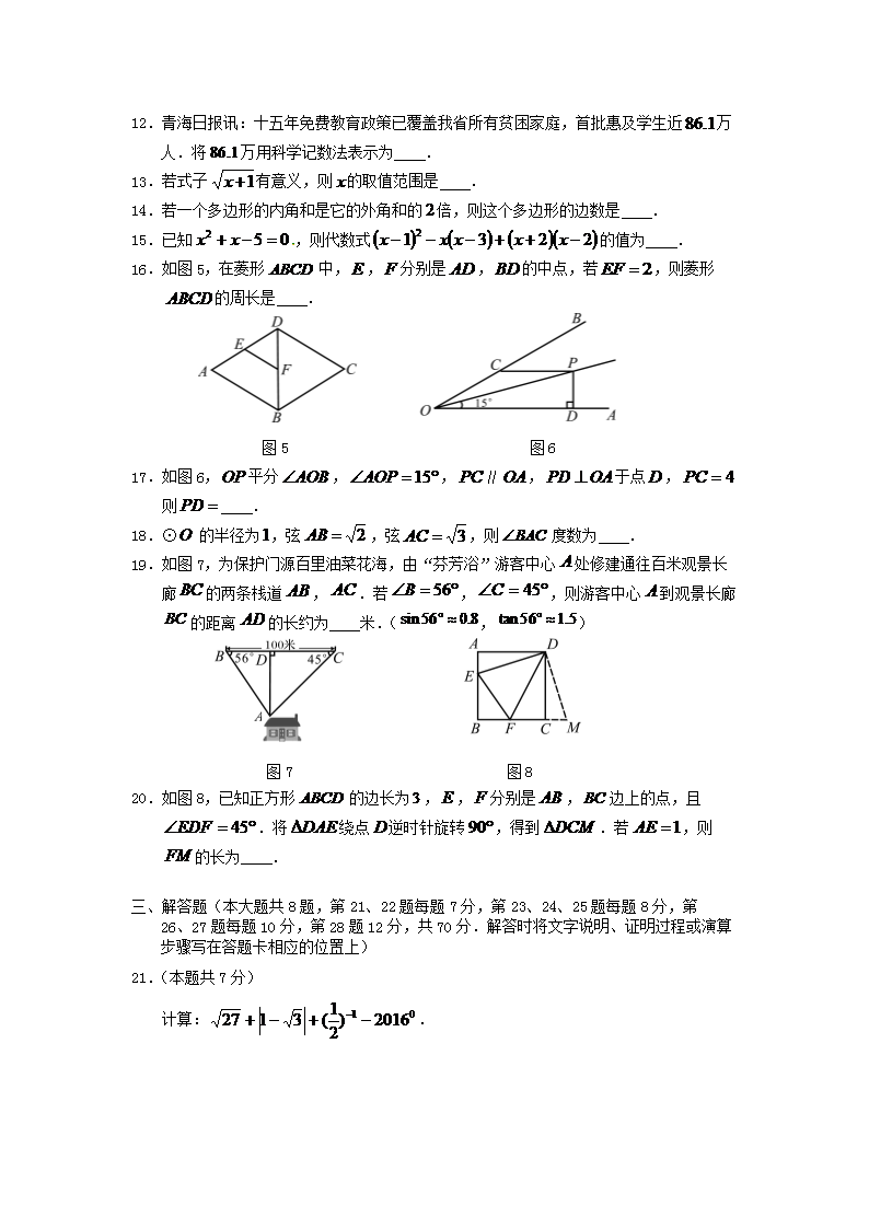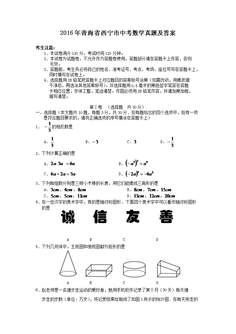 【文档名称】 2016年青海省西宁市中考数学真题及答案(Word版).doc