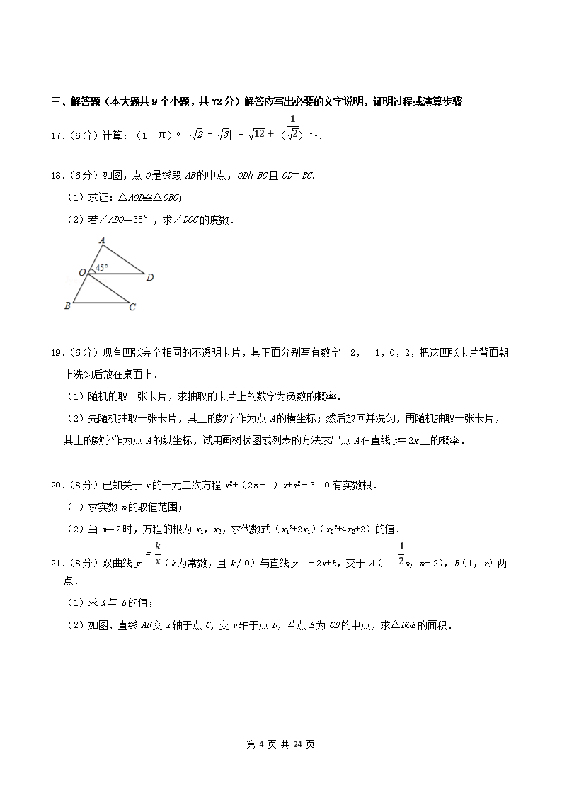【文档名称】 2019年四川省南充市中考数学真题及答案(Word版).doc