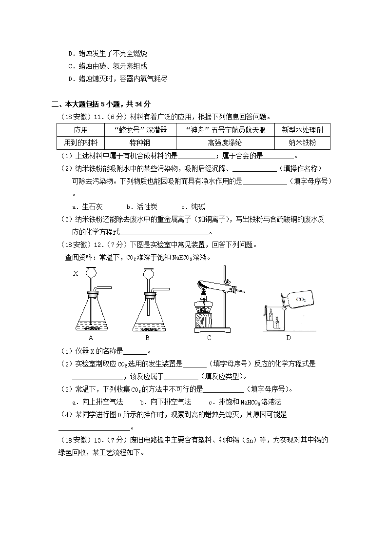 【文档预览】 无忧考网整理发布2018安徽省中考化学真题及答案(Word版),前五页预览如下:
